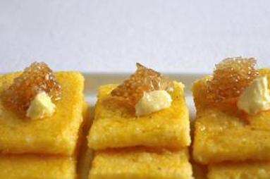 Жареная поленту можно посыпать свеженатертый пармезан сыр , политая кленовый сироп, или использовать в качестве основы для почти любого соуса.