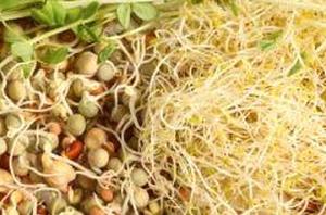 - Горох, чечевица, соевые бобы и бобы мунг — бобы мунг используются для обычных белых ростков, которые можно увидеть в большинстве продуктовых магазинов. Горох, чечевица и соевые бобы дают такие же крепкие ростки.