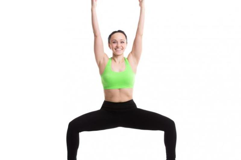 - В конечном счете, цель состоит в том, чтобы присесть так, чтобы бедра были параллельны полу, но вы можете дойти до этого, если вы новичок в позе богини. Приседайте до удобной для вас точки, сохраняя положение пяток, пальцев ног, коленей и позвоночника.
