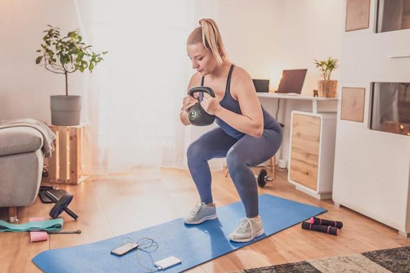 - Практикуйте приседания с отягощениями с жимом над головой в течение 60 секунд.