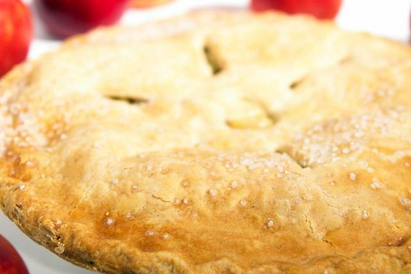 Для пирога с двумя коржами разогрейте духовку до температуры, указанной в Непревзойденные рецепты и советы яблочного пирога . Выстелите первую часть теста на девятидюймовую тарелку для пирога так, чтобы оно свисало с краев пирога. Наполнить и накрыть вторым коржом. Защипните края и сделайте несколько вертикальных надрезов в верхней части пирога, чтобы пар мог выходить во время приготовления. Смажьте смесью одного яйца и столовой ложкой воды и, если хотите, посыпьте мелким сахаром. Выпекайте согласно инструкции к вашему пирогу.