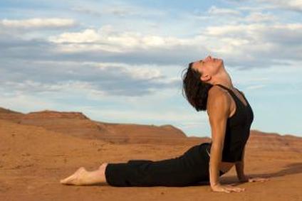 - Бхуджангасана Отталкиваясь руками и держа ноги прямо, выгните спину в позу кобры . Вдохните и повторяйте Ом хиранаягарбхайа намах (Приветствие Золотому Космическому Я).