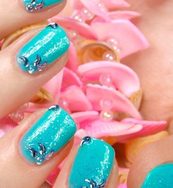 Пляжный дизайн ногтей не должен быть замысловатым, как этот бирюзовый стиль с драгоценными камнями и блестками, хотя он может быть, если вы хотите и имеете время.