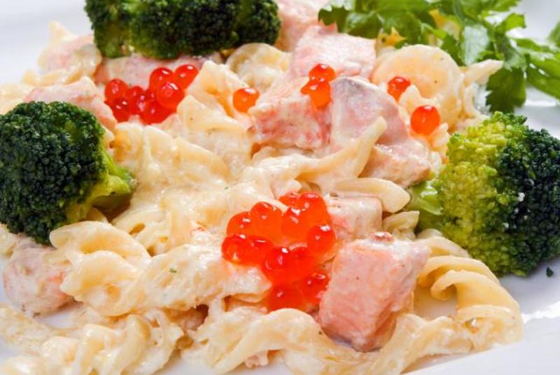 В этом ужине из продуктов, богатых железом, есть все: темно-зеленые овощи, обогащенная паста и здоровая доза омега-3 жирных кислот из лосося.