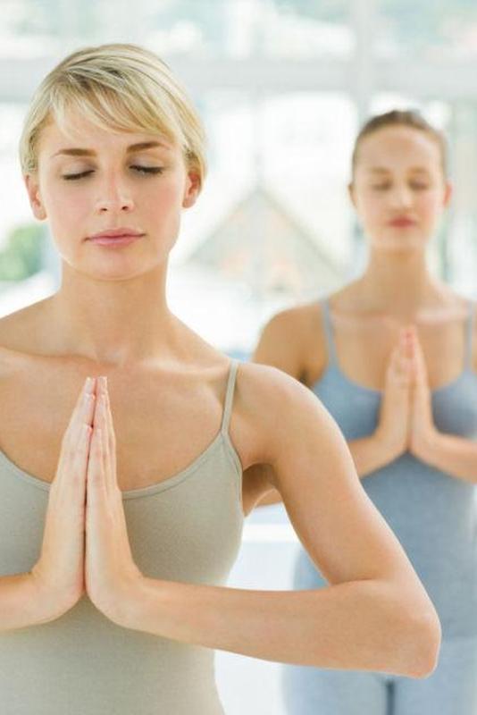 Начните с позы горы, руки у сердца. Это поможет вам сбалансировать тело и разум.