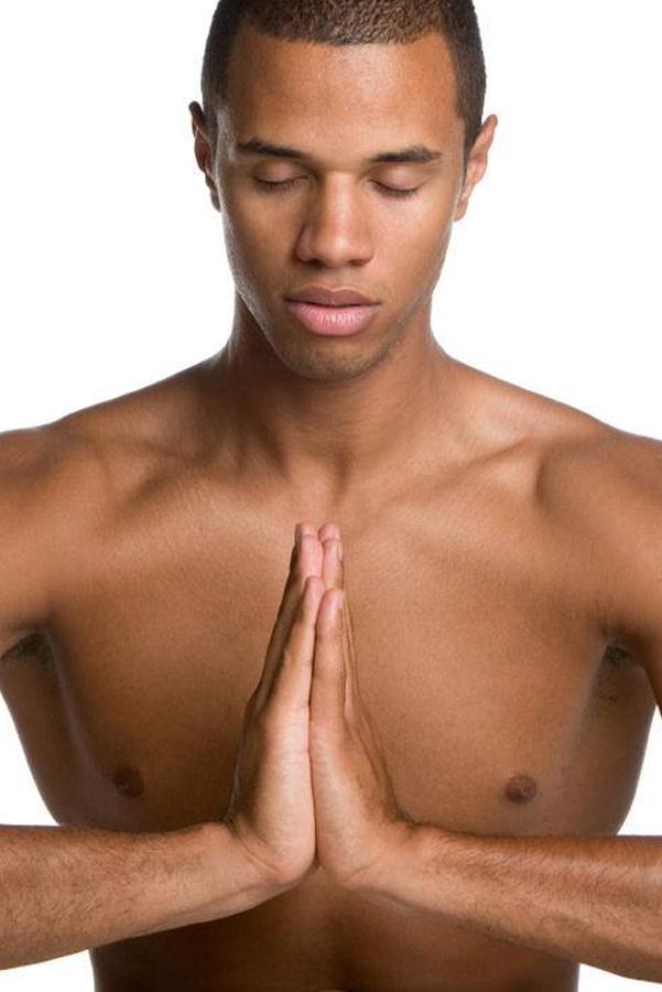 Вы можете попробовать стоять в позе горы или сидеть, сложив руки в намасте , как показано здесь.