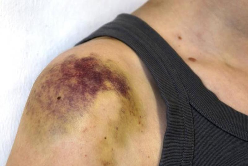 В случаях, когда синяк особенно сильный, может образоваться гематома . Это твердая шишка, которая развивается на месте ушиба. Хотя это выглядит как странная шишка, на самом деле она состоит из небольшого количества крови, которая скапливается в жировых тканях под кожей.