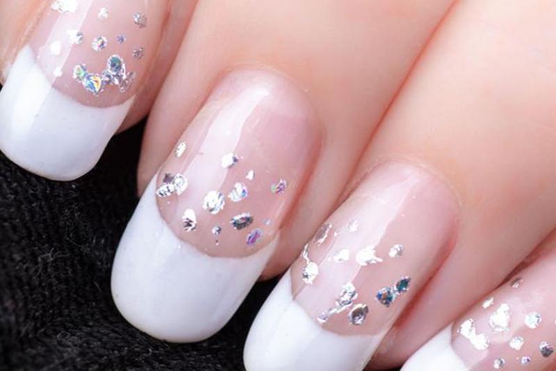 Ледяной серебристый блеск этому французскому маникюру придается с помощью серебряной переводной фольги. Этого взгляда легко достичь.