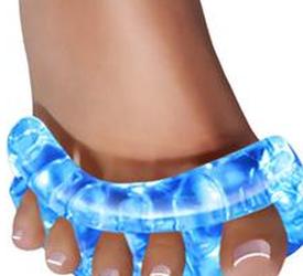 Компания Yoga Pros, создатель растяжек для пальцев ног Yoga Toes, изготовила непористое устройство, которое позволяет тренировать пальцы ног так же легко, как сидеть и смотреть телевизор. Концепция проста: наденьте Yoga Toes на верхнюю часть стопы и, согласно их литературе, автоматически «растянете, укрепите и выровняете мышцы стопы».
