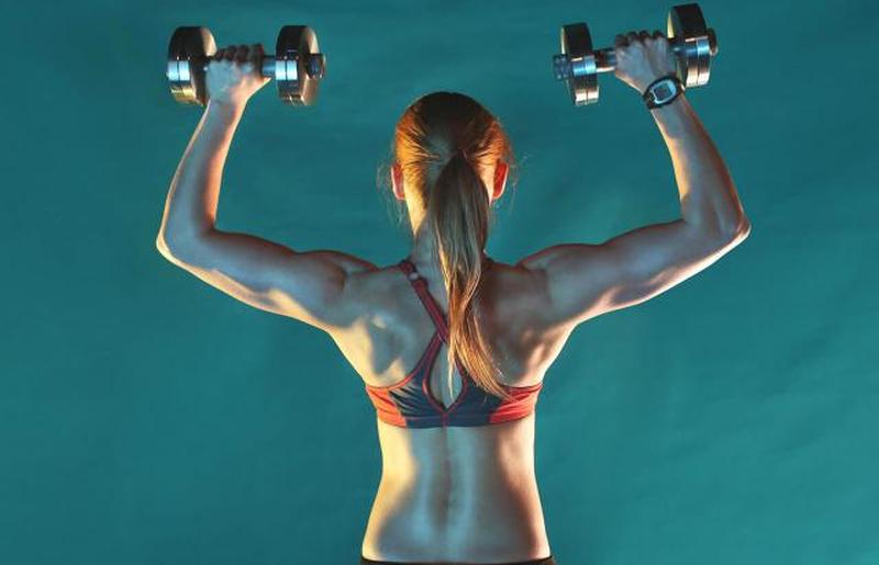 - Сведите лопатки вместе, отводя локти назад и поднимая тяжести вверх.