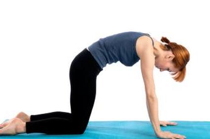 - На выдохе подтяните пупок к позвоночнику, наклоните таз и округлите спину.