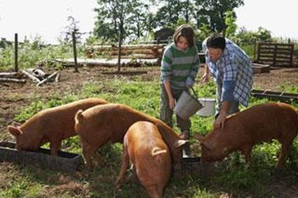 Есть много органических фермеров, которые хотят использовать альтернативные методы кормления своих свиней. Моя здоровая зеленая семья (MHGF) указывает, что органический корм для свиней стоил им 24 доллара за каждый мешок, и свиньи очень быстро съедали пакеты с кормом в ходе своего развития. В конечном итоге MHGF перешла на то, чтобы позволить свиньям копаться на пастбище, кормя их обрезками органических овощей и черствым сертифицированным органическим хлебом. Многие фермеры традиционно кормили свиней объедками из собственной еды, и люди, которые сами едят сертифицированные органические продукты, сегодня могут более или менее делать что-то подобное.