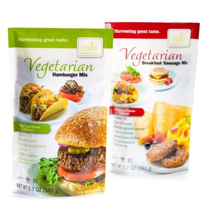 Harmony Valley — одна из компаний, которая недавно представила новый веганский заменитель мяса, который она называет «вегетарианской смесью». Продукт выпускается в двух вариантах: гамбургер и колбаса для завтрака. Оба на основе сои и не содержат молочных ингредиентов.