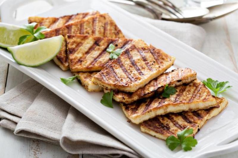 - Обжаривайте тофу на разогретом гриле примерно по две минуты с каждой стороны.